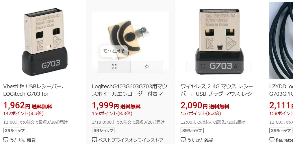 このように、g703のUSBレシーバーは安価だ。
